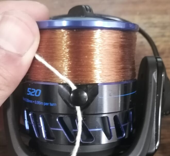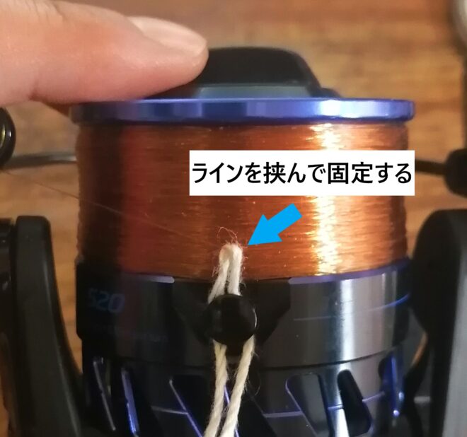 その場合、100均ショップで売っているタコ糸や輪ゴムなど、太くて摩擦係数の高い糸でラインを固定すると、いざというときに困りません。