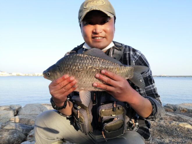 琵琶湖では、40cm以上の大きなフナが釣れます。アタリは繊細で、すぐエサを吐き出してしまうので素早い合わせが必要です。引きはコイに似てずっしり重く、深場に逃げようとする習性があるのでロッドを立てて釣りあげます。