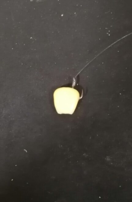 サシ虫なら4匹程度、コーンなら一粒、ランチョンミートなら6mm角がちょうどいいサイズになります。